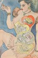 As a student at the Tokyo Fine Arts School (now Tokyo University of the Arts) in the 1920s, he was drawn to the work of Henri Toulouse-Lautrec depicting the demimonde of 19th-century Paris. Other references are the acerbic and surreal caricatures of the German New Objectivity painters, including Otto Dix and George Grosz.